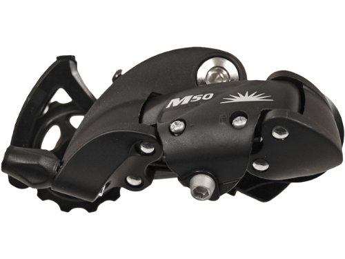 Sunrace RDM56 - 8 speed, 2:1 Shimano index compatible actuation ratio, aluminum outer link, steel outer pulley cage, 13T Tension Pulley, Long Cage, works with 34 tooth mega range cogs, 343g, black Read more...